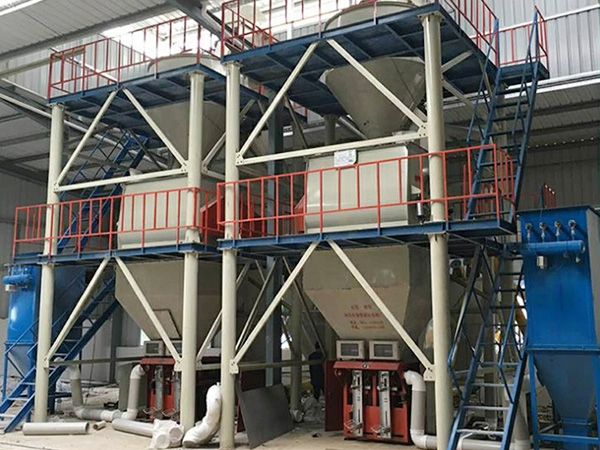 本设备自动化程度高,微机控制自动配料,是一款大型自动化干粉砂浆生产设备,适用于产量较大、厂房宽敞的工艺要求。